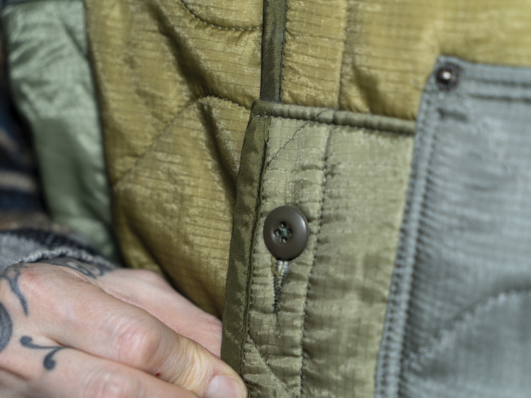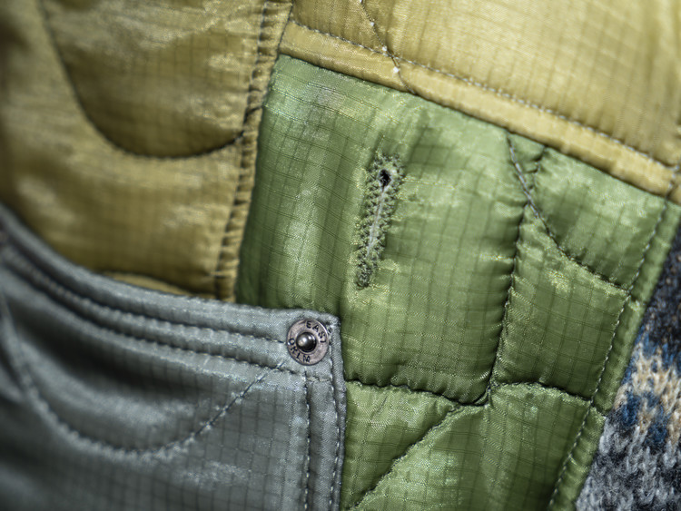 해체한 M65 라이너들은 곡선 형태의 패치워크 포켓으로 제작되었습니다.