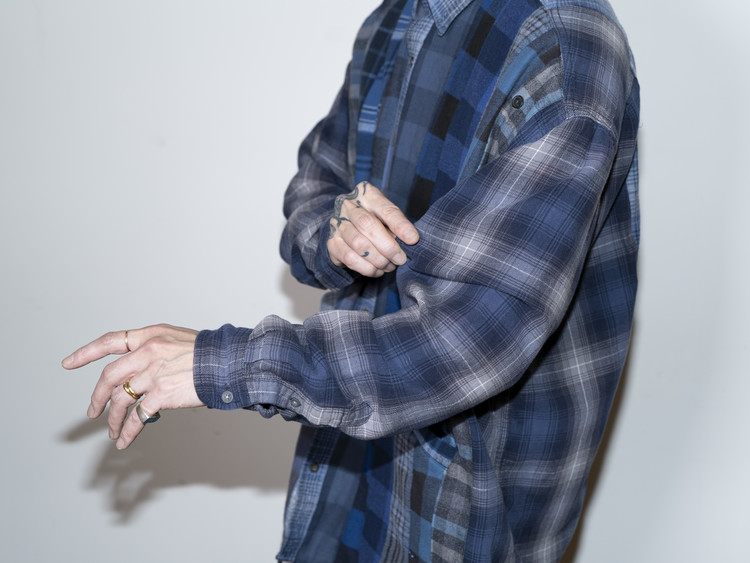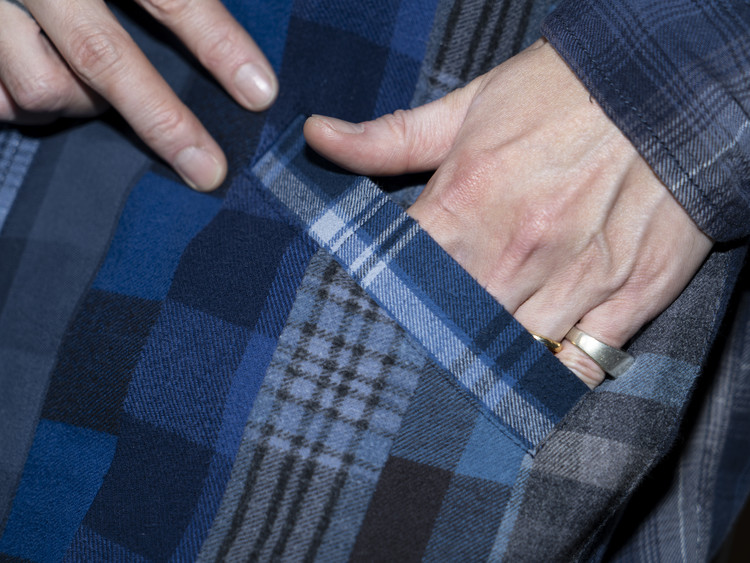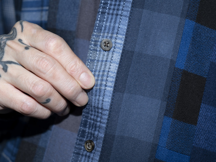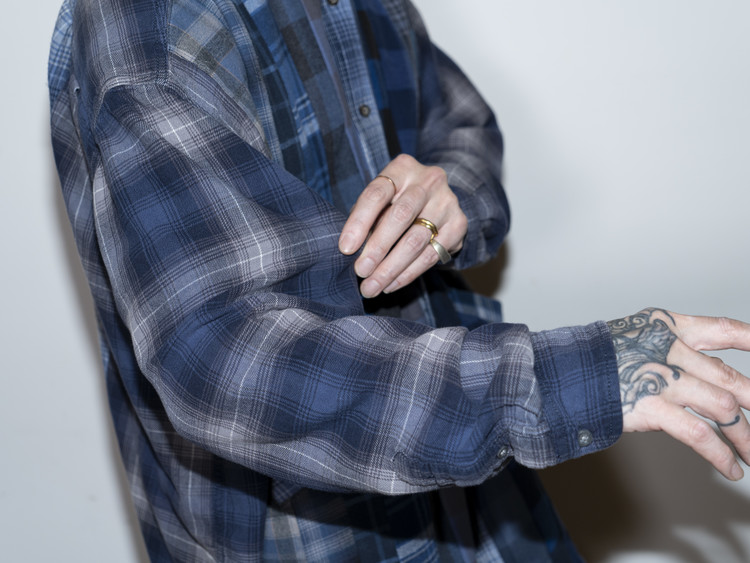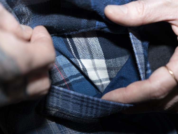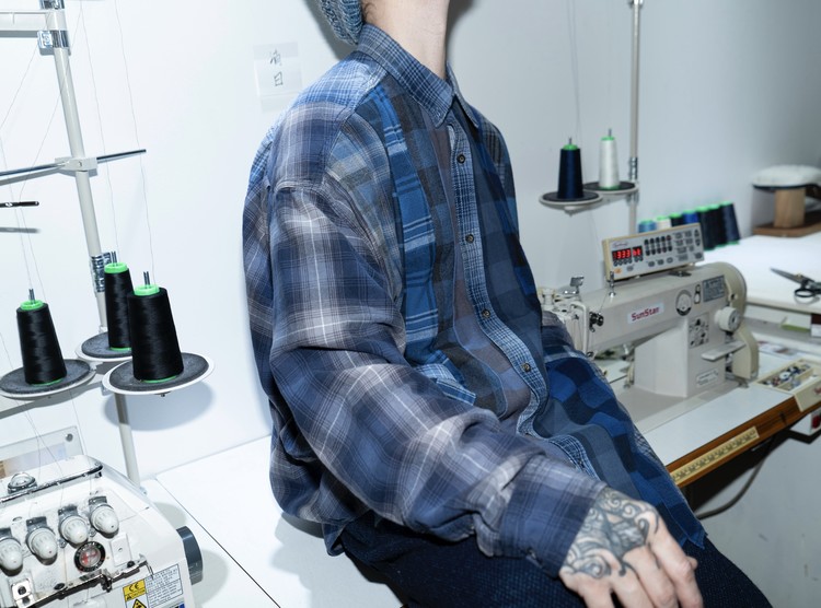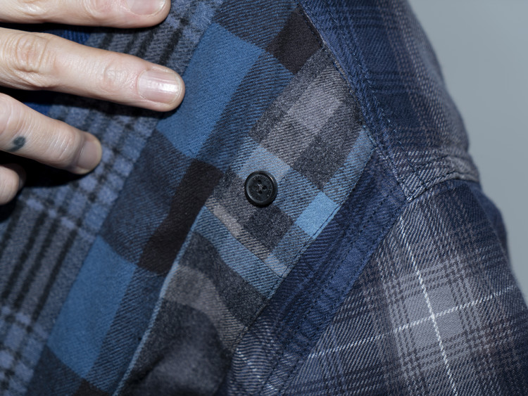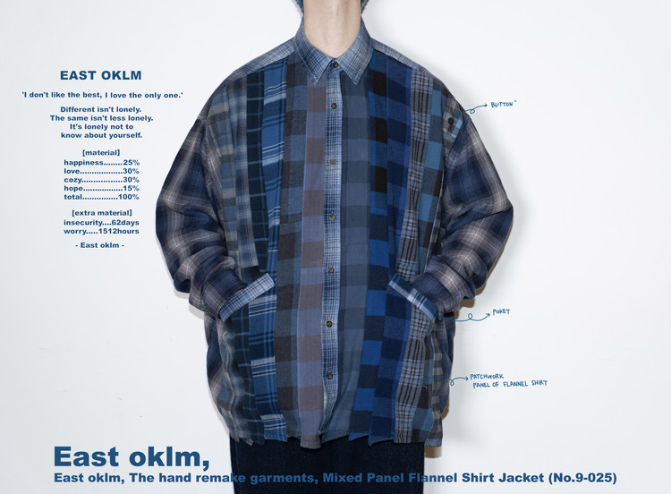 East oklm, The hand remake garments로 제작된 플란넬 믹스 셔츠 자켓 제품.
