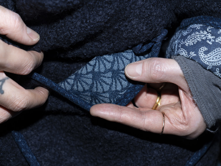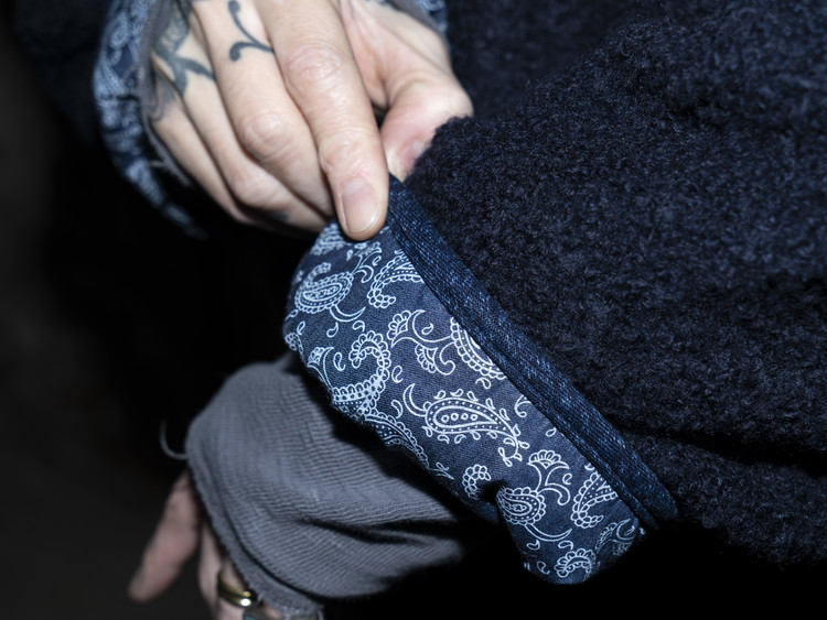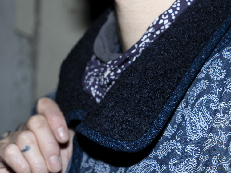 겉면은 부드럽고 따뜻한 양털 플리스를 사용해 겨울 시즌에 적합한 포근한 질감을 담았으며, 안감은 페이즐리 패턴의 인디고 데님과 입체적인 부채 모양 텍스처가 돋보이는 동양적 감성의 데님 원단 두 가지를 믹스해 완성했습니다.