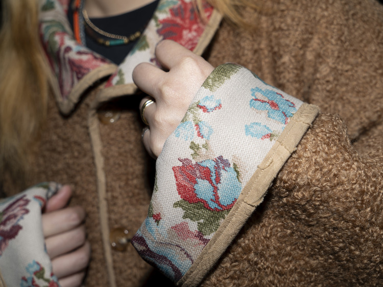 겉면은 포근한 텍스처의 양털 플리스를 사용해 한층 따뜻한 질감을 담아냈고, 안감은 두 가지 컬러의 에스닉 플라워 패턴을 믹스해 빈티지하면서도 고유의 분위기를 전달합니다.