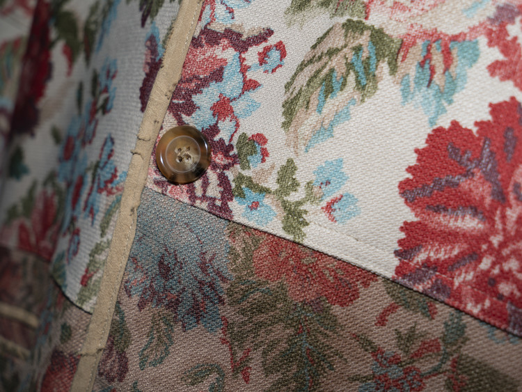 모든 끝단은 페이즐리 텍스처를 담은 베이지 컬러 원단으로 마감해 플라워 패턴과 자연스럽게 어우러지는 균형감 있는 디테일을 표현했습니다.