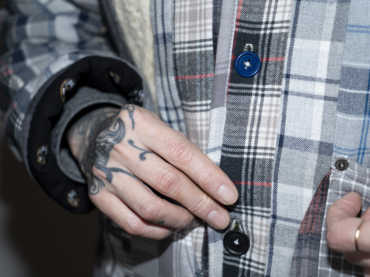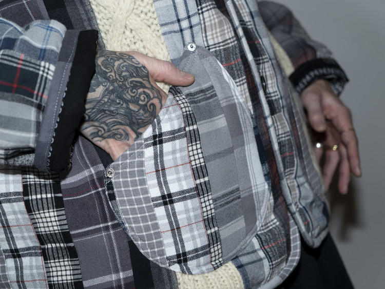 아우터의 가장자리 마감 역시 플란넬 셔츠의 조각들로 감싸 완성하여, 작은 부분까지도 손으로 만든 옷의 완성도를 느낄 수 있도록 하였습니다.