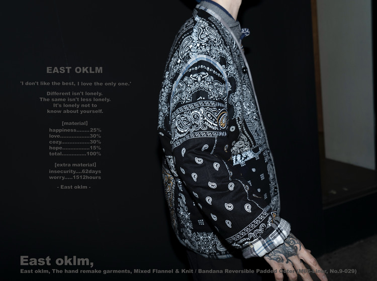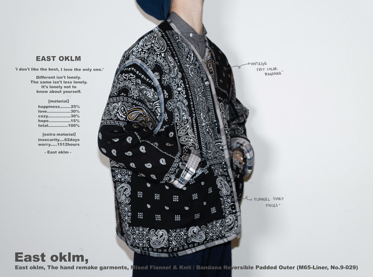 East oklm, The hand remake garments 라인으로 M65-Liner를 기반 삼아 제작된 리버서블 패디드 아우터 제품.