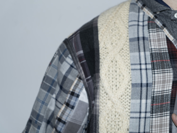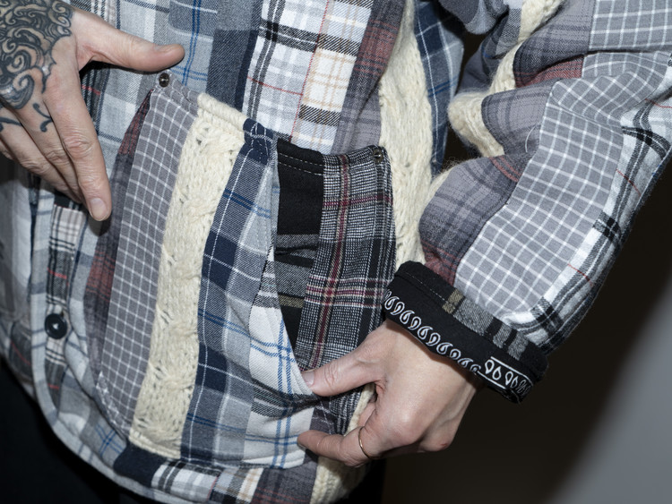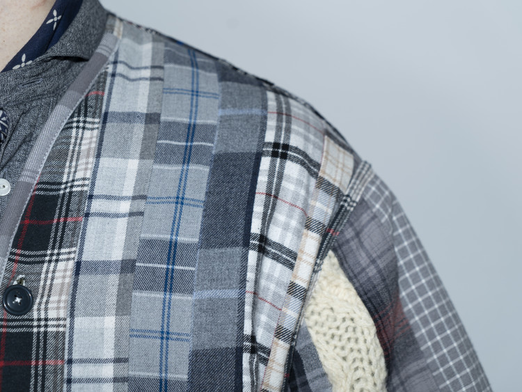 각기 다른 플란넬 셔츠의 조각들은 방향과 비율을 세심하게 조율하며 이어 붙여, 조화롭지만 쉽게 볼 수 없는 독특한 구조감을 완성합니다.