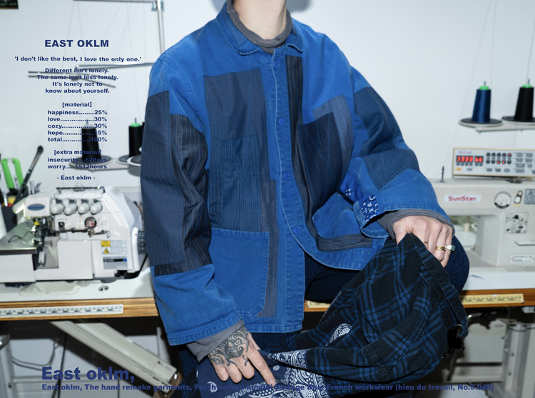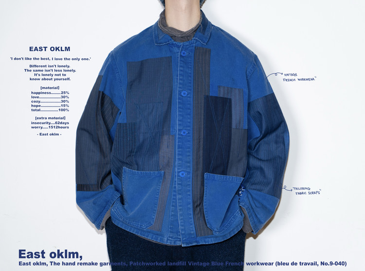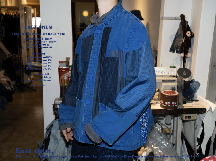 East oklm, The hand remake garments, Patchworked landfill Vintage Blue French workwear (bleu de travail, No.9-040)