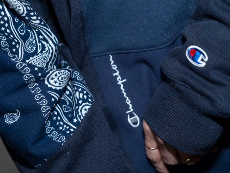90년대를 추억할 수 있는 프린팅 디자인과 함께 곳곳에 위치한 Champion 로고 자수들과 반다나의 조합이 인상적인 완성도 높은 단 하나의 옷 입니다.