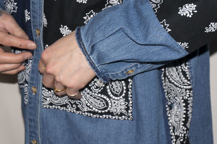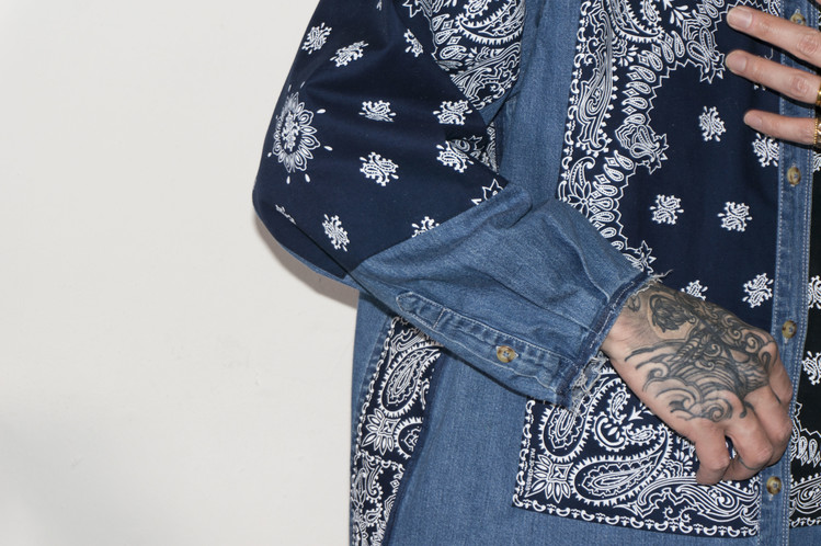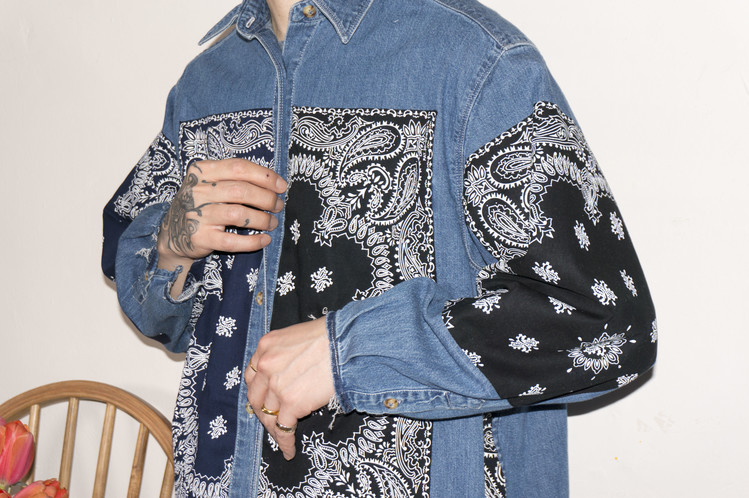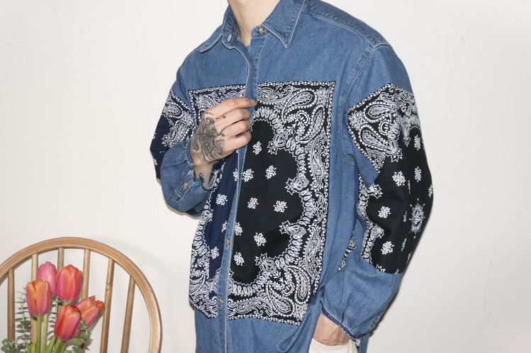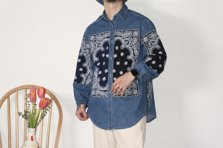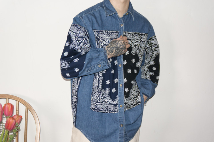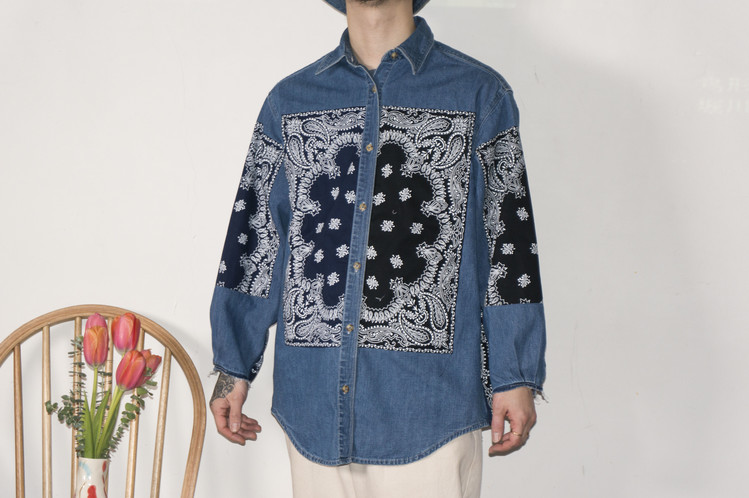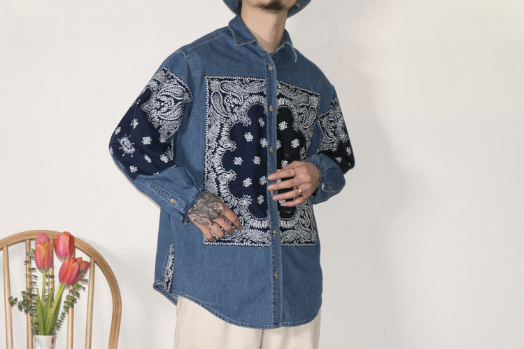 East oklm, The hand remake denim, bandana patchworked landfill shirtSOLDOUT