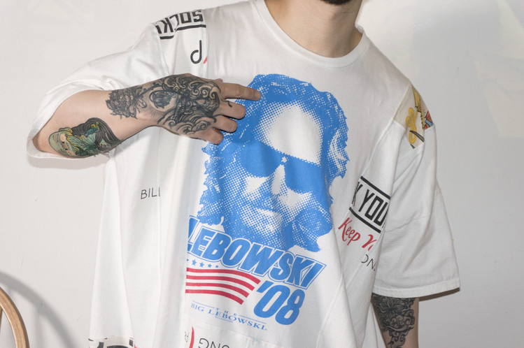 East oklm, The hand remake garments로 50’s~80’s의 화이트 빈티지 티셔츠들을 해체하고 재구성하여 만들어진 상품. 레트로한 프린팅 위주의 제품들을 모아 표현하였으며, 루니툰 캐릭터의 포인트 또한 볼 수 있도록 만들어졌습니다. 보다 느긋한 실루엣으로 완성되었으며, 뒷판의 레드 반다나의 포인트도 확인할 수 있는 남녀 누구에게나 어울릴 수 있도록 만들어진 귀여운 믹스 티셔츠 입니다.