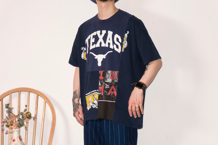 East oklm, The hand remake garments, mixed T-shirt (Navy)