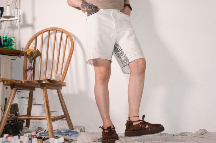 East oklm, The hand remake denim, Painting Unbalanced Landfill Shorts (Levis 513)