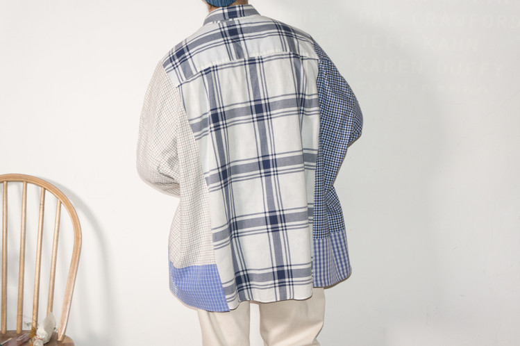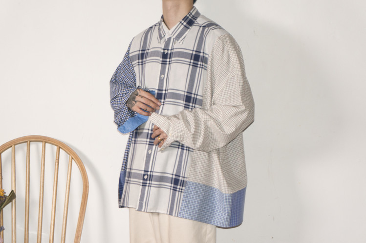 East oklm, The hand remake garments로 여러장의 셔츠들을 해체하고 재구성하여 만들어진 상품. 전체적으로 부드러운 색감의 톤으로 구성된 믹스 셔츠 입니다.