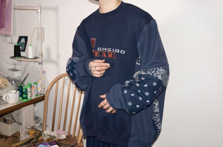 East oklm, The hand remake garments, mixed landfill sweatshirt (Navy)