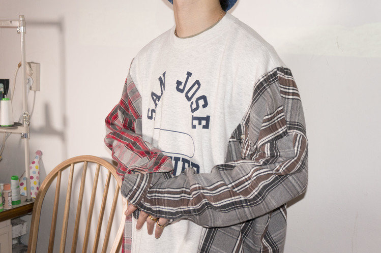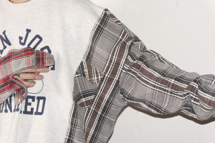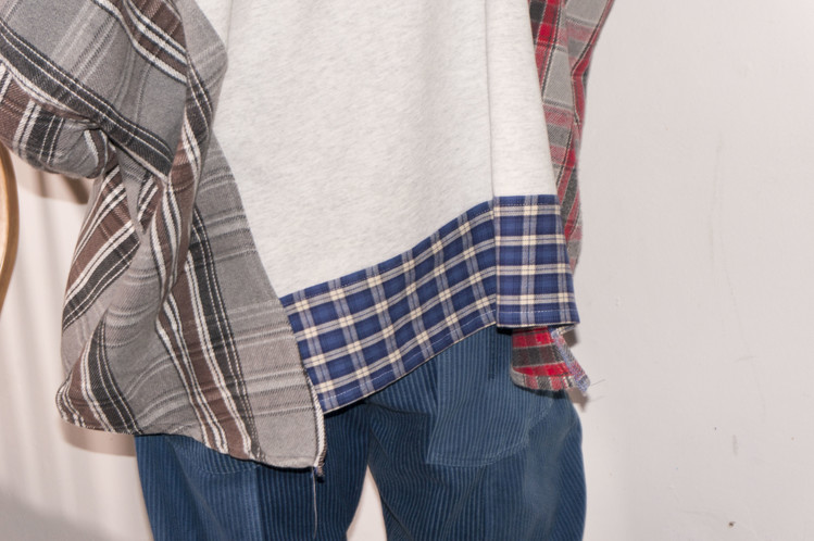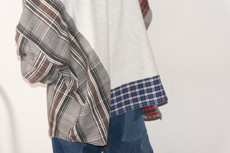 East oklm, The hand remake garments, mixed sweatshirtt (x Flannel shirt)