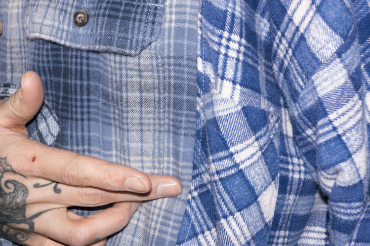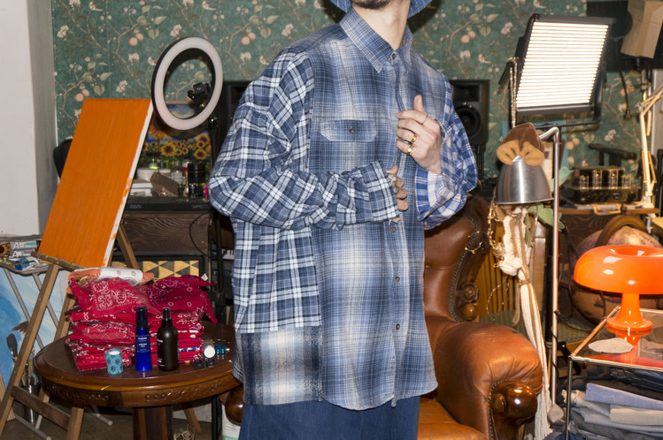 East oklm, The hand remake garments, mixed flannel shirt (Blue)