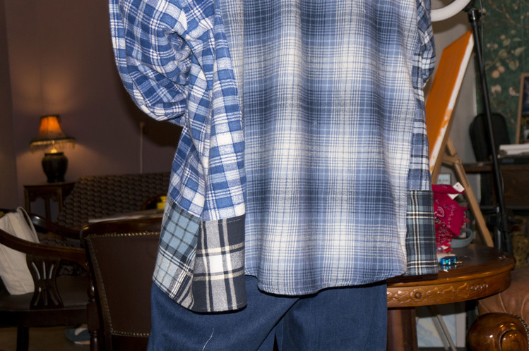 보다 여유로운 실루엣을 가지며, 양쪽 옆 아래쪽은 플란넬 셔츠들의 조각을 이용하여 이어져 있는 포인트를 볼 수 있습니다.