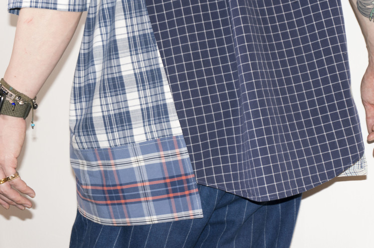 East oklm, The hand remake garments로 레트로한 체크패턴의 셔츠들을 해체하고 재구성하여 만들어진 믹스 셔츠 상품. 여름과 어울리는 소재와 조화로운 색감들로 연결되어 좋은 균형감으로 완성 되었습니다.
