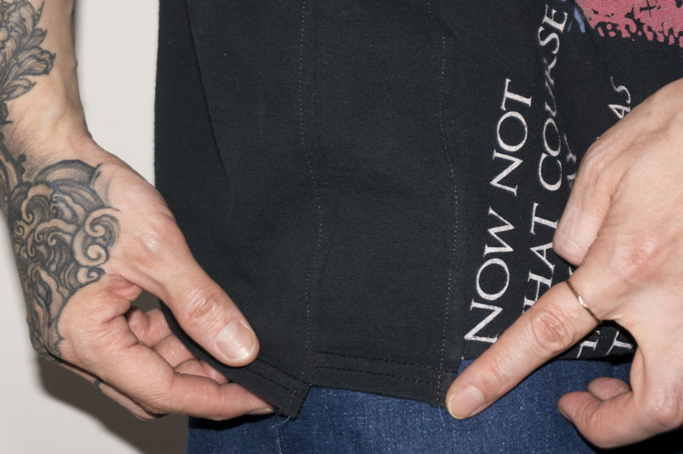 밑단 끝은 길이감의 차이를 조금 두었고, 전체적으로 빈티지한 블랙 색상의 티셔츠들을 이용하여 보다 자연스러운 느낌을 전달 합니다.