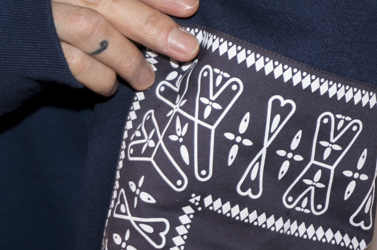 왼쪽 소매의 반다나는 탈색하여 색상의 차이를 두었으며, 뒤판에 연결된 레트로한 프린팅의 조각으로보다 길이감을 더하여 좋은 균형감을 가집니다. 여유로운 실루엣으로 완성되어 편안하게 입을 수 있는 하나의 옷으로 완성 되었습니다.