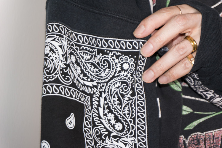 소매에 넓게 패치워크 되어지고, 양옆을 채운 빈티지 반다나의 포인트로 움직임과 함께 보일 부분을 확인할 수 있으며, 보다 여유로운 실루엣으로 편안하게 입을 수 있는 하나의 옷으로 완성 되었습니다.
