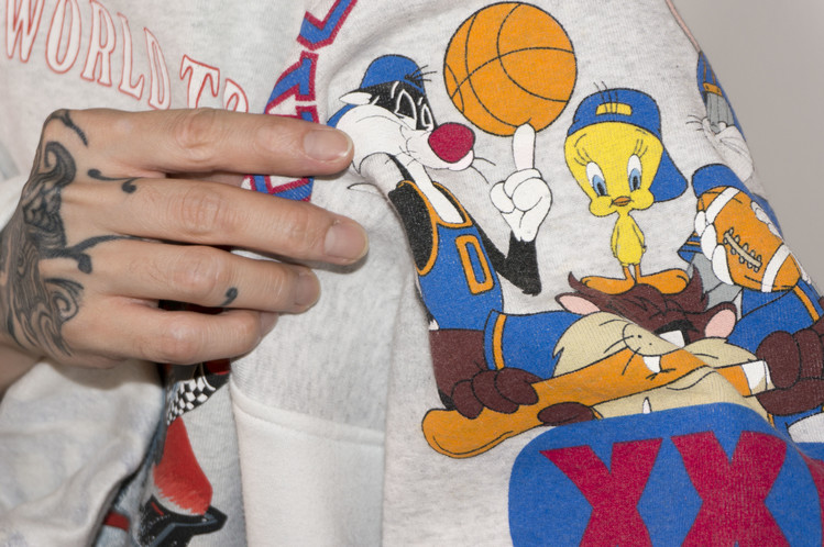 특징적인 여러 귀여운 캐릭터들(Pooh, Looney tunes)과 레트로한 아메리칸 빈티지 스웻셔츠들의 프린팅들이 인상적이며, 조각난 프린팅의 부분들과 반다나의 포인트, 셔츠에 체크 패턴의 조각 또한 확인할 수 있습니다. 보다 여유로운 실루엣으로 입을 수 있는 품과 길이감으로, 마감 또한 단단하게 완성된 높은 퀄리티의 제품 입니다.