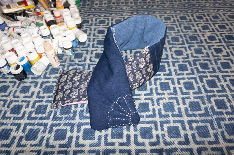 East oklm, The handmade garments, Reversible needlework badana denim mufflerSOLDOUT