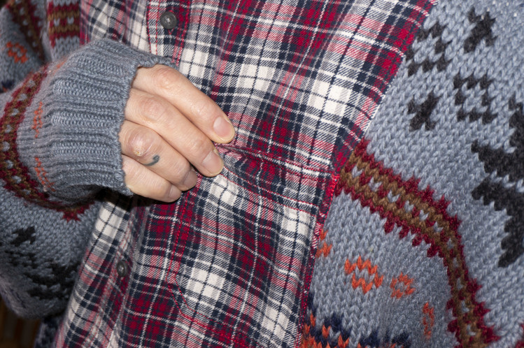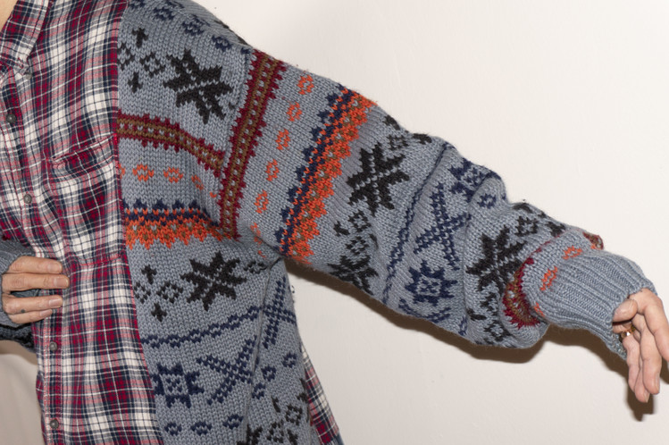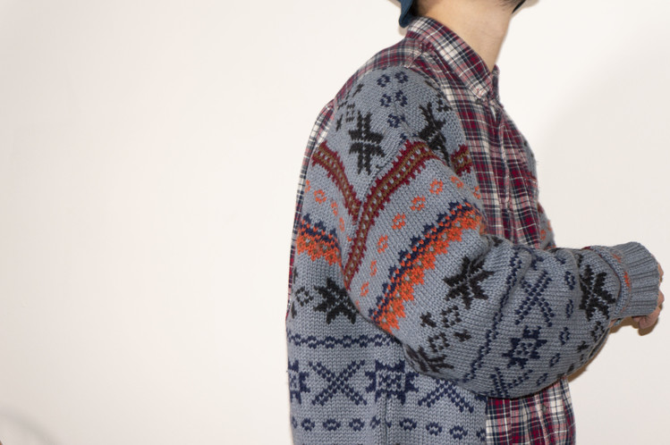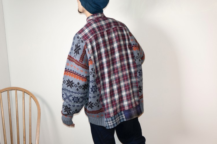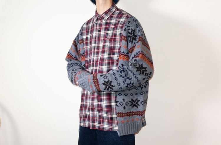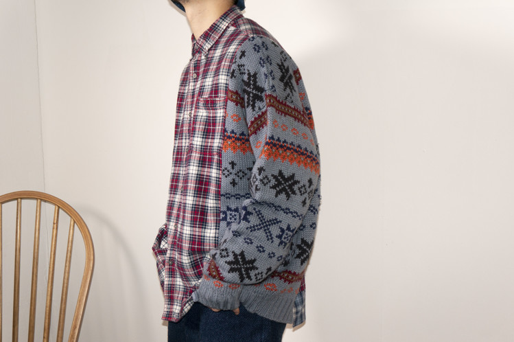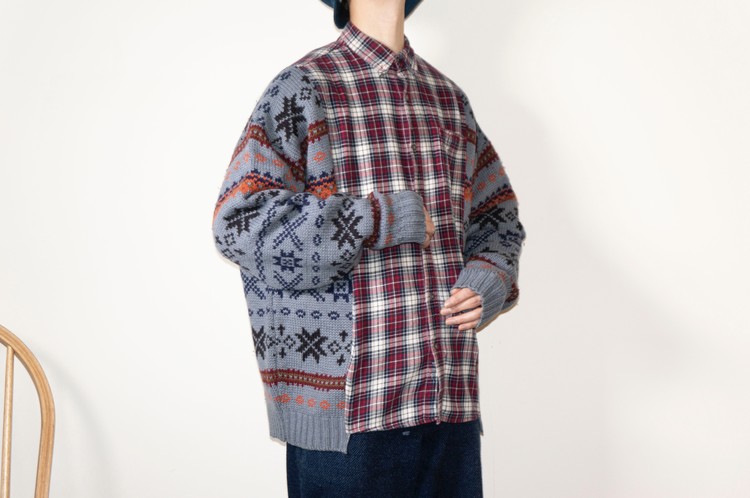 East oklm, The hand remake garments, mixed shirt (Flannel x knit)