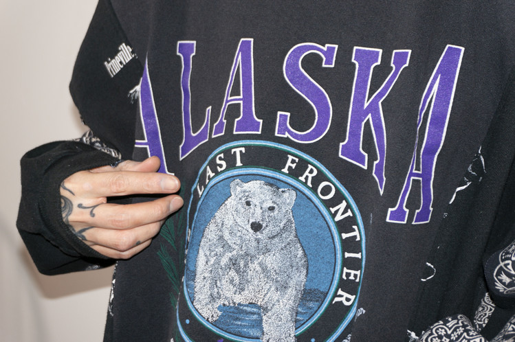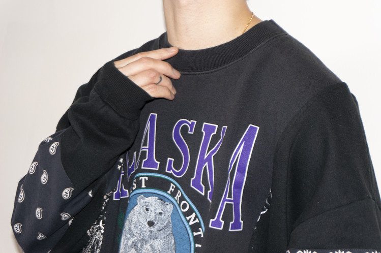 East oklm, The hand remake garments, mixed landfill sweatshirt (Black)