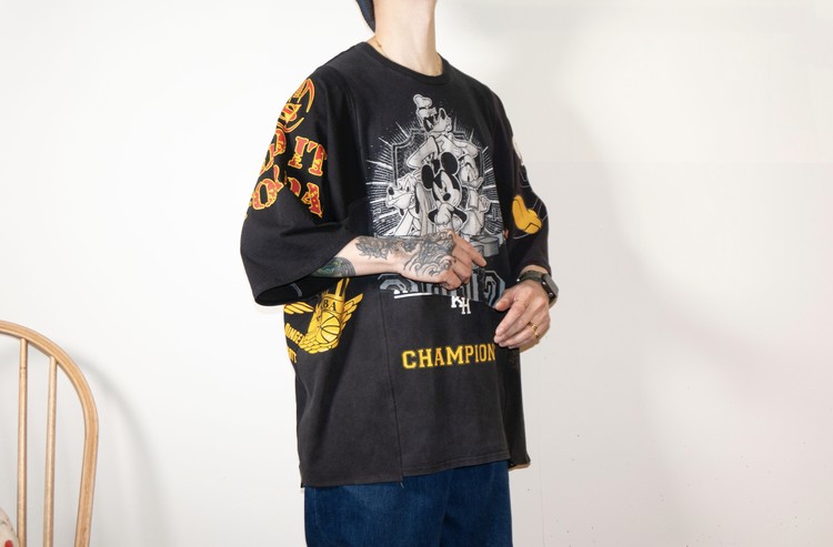 East oklm, The hand remake garments, mixed T-shirt (80’s ~90’s disney, Black)