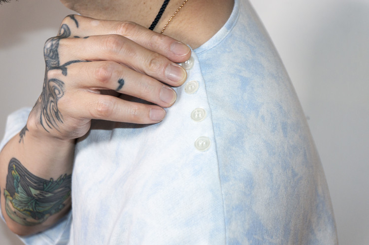 맑은 하늘을 표현하여 보는 것만으로도 기분이 좋아질 수 있는 색상을 확인할 수 있습니다. 넥부분 옆의 단추로 귀여운 느낌과 실용성을 더한 옷으로 편안하게 입을 수 있는 하나의 옷 입니다.