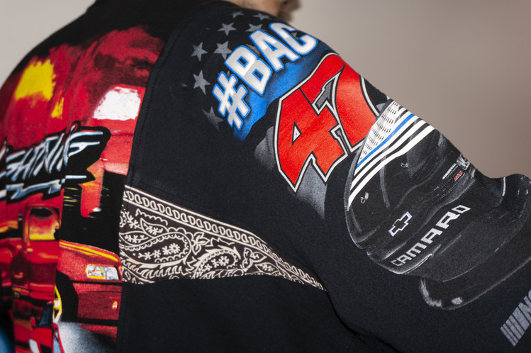 블랙 색상의 티셔츠들을 이용하여 조화로운 균형감을 가지며, Fast color의 빈티지 반다나로 패치워크 되어진 조각 또한 볼 수 있습니다. 보다 여유로운 실루엣으로 완성되어 편안하게 입을 수 있는 완성도 높은 하나의 옷 입니다.