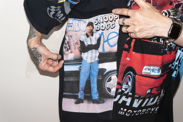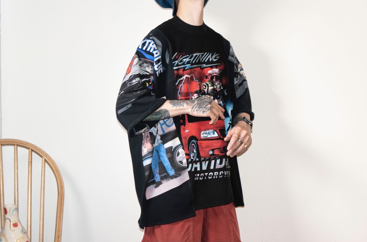 Street Fighter 의 류와 켄 캐릭터의 프린팅과 Snoop Dogg 젊은 시절의 프린팅, Harley Davidson 등의 다양하고 레트로한 프린팅들을 확인할 수 있으며, 전체적으로 조화로운 색감의 구성으로 이루어진 모습을 확인할 수 있습니다.