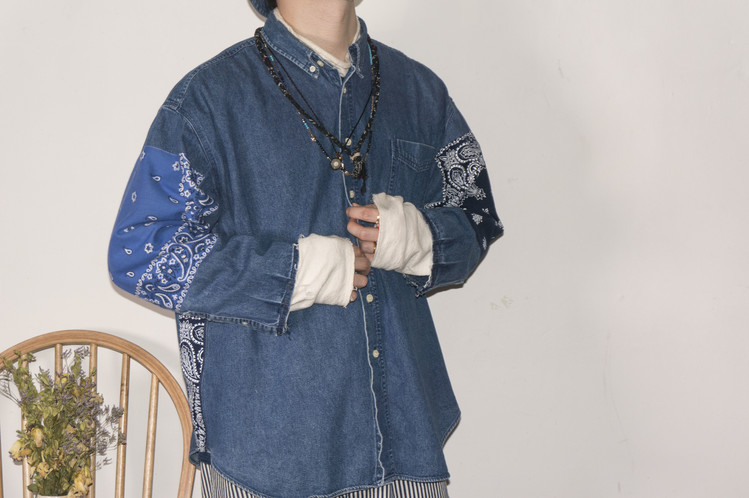 East oklm, The hand remake denim, bandana patchwoked landfill shirt
