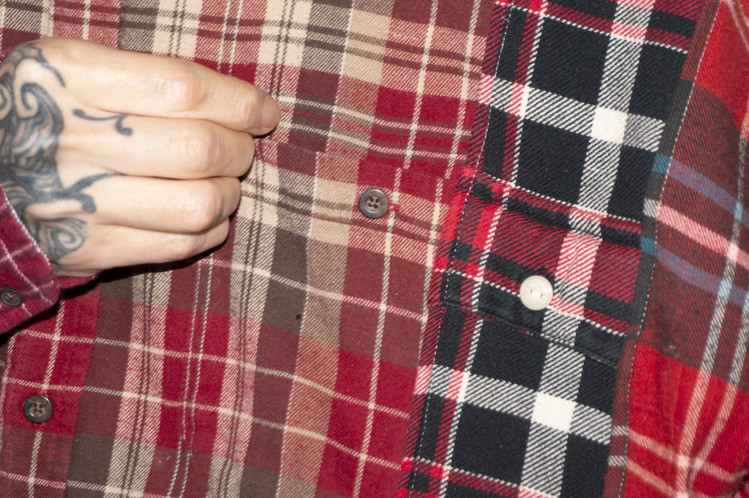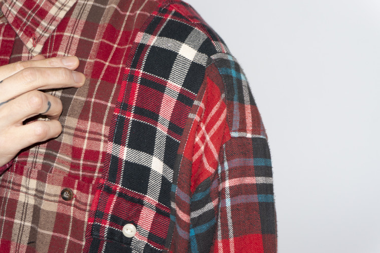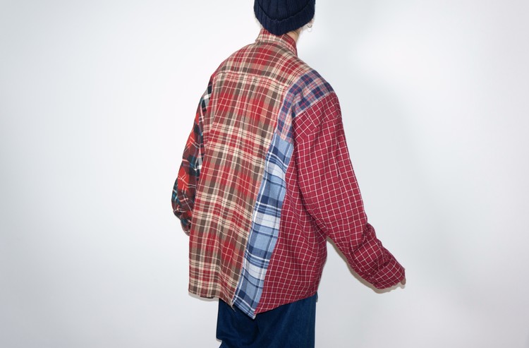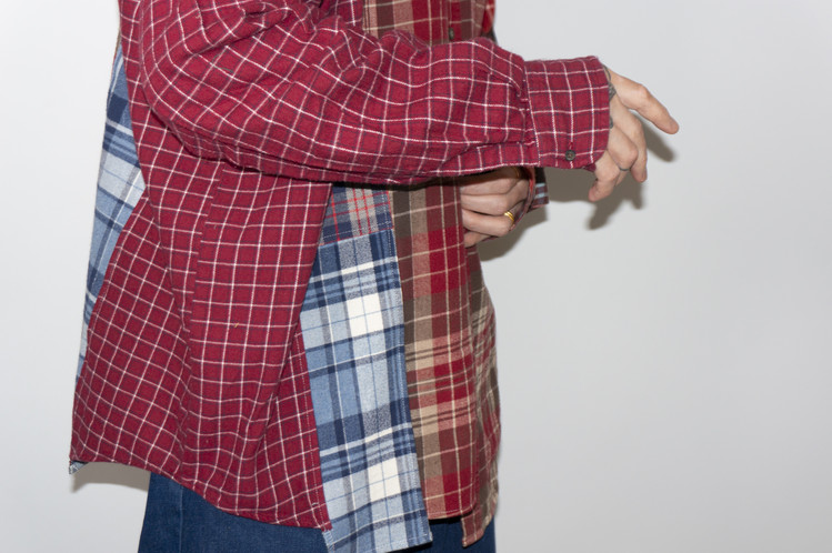 East oklm, The hand remake garments로 여러장의 플란넬 셔츠들을 해체하고 재구성하여 만들어진 믹스 셔츠 상품.