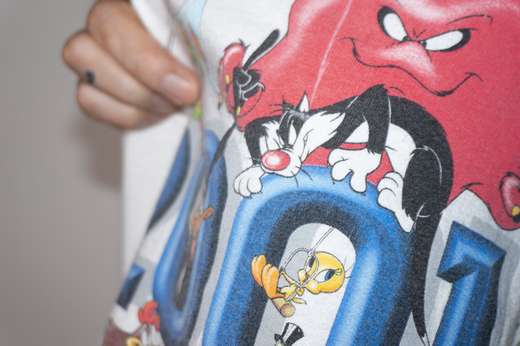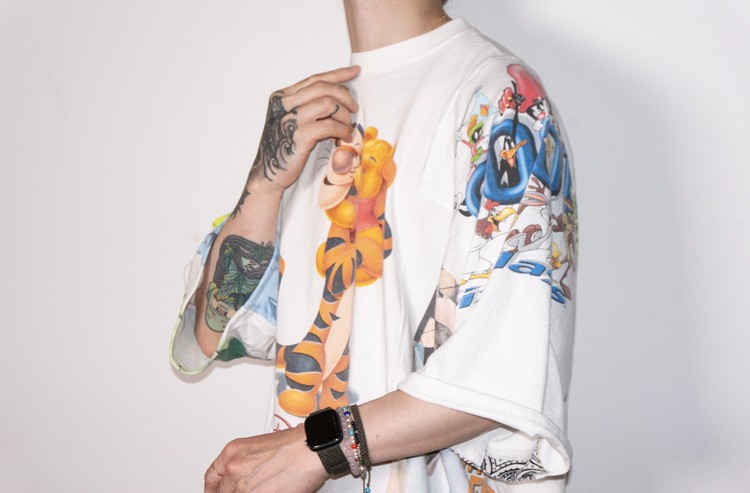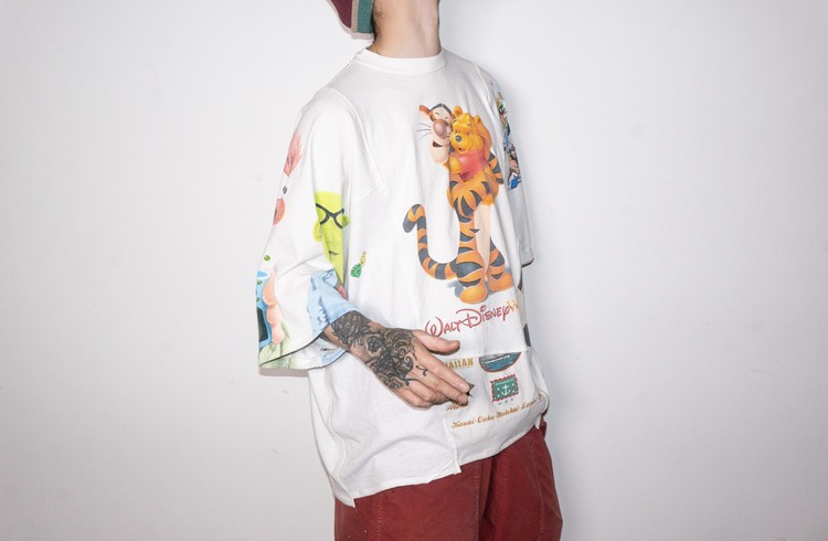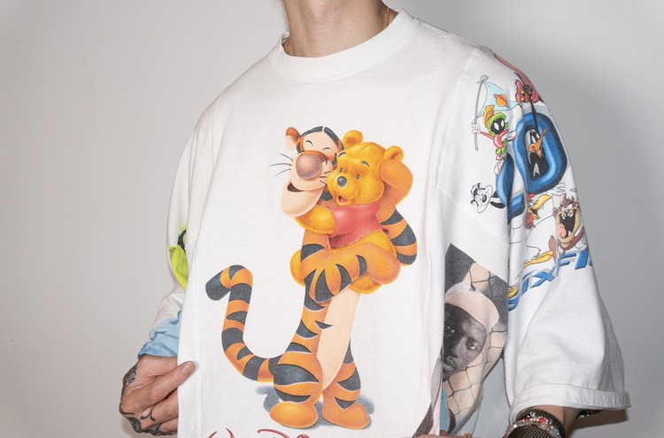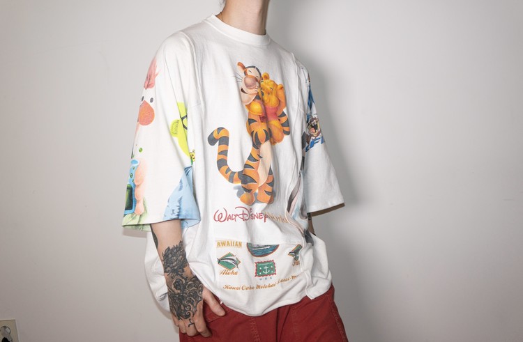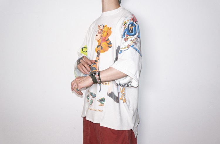 귀여운 티거와 곰돌이 푸 캐릭터 프린팅의 80’s ~90’s Disney 티셔츠를 중심으로 Looney Tunes 캐릭터들의 프린팅, 옅은 색감의 레트로한 프린팅들의 조각들로 이루어진 구성을 볼 수 있으며, 프린팅의 색상과 스타일들이 조화롭게 어울릴 수 있도록 표현 하였습니다.
