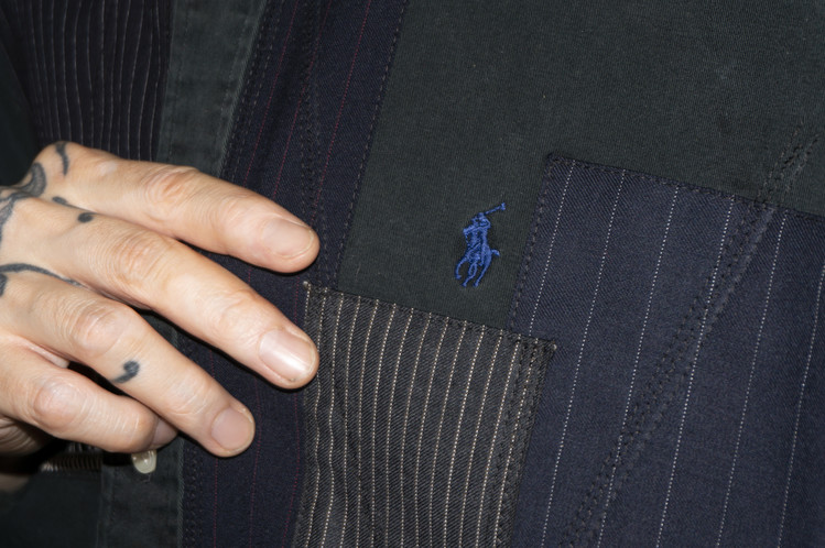 왼쪽 가슴에 위치한 인디고 색상의 Polo Ralph Lauren의 로고 자수는 기존 브랜드의 아이덴티티를 그대로 나타내며, 패치워크 되어진 테일러 원단들과 좋은 균형감을 보여 줍니다.