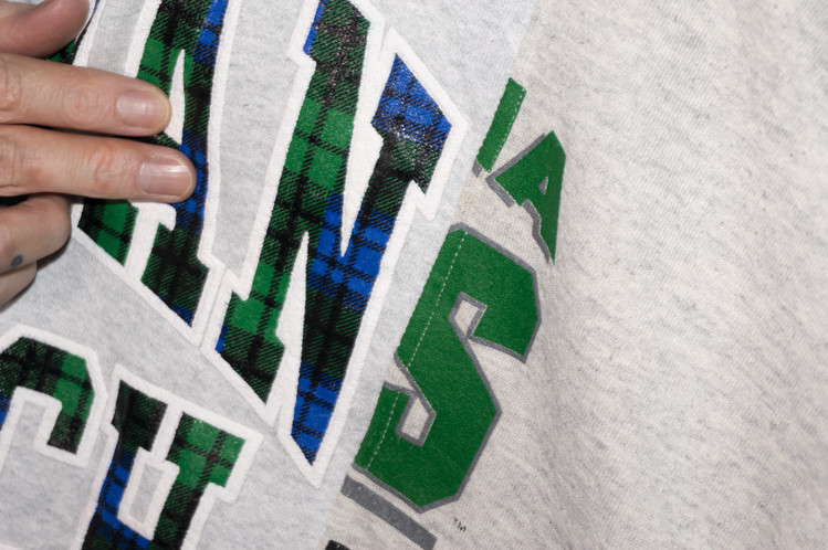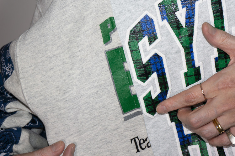 서로 다른 세월감을 가진 멜란지 컬러에 레트로한 레터링과 프린팅이 인상적인 스웻셔츠들로 구성되어 앞판의 중심과 양옆으로 조각난 프린팅들을 볼 수 있습니다.