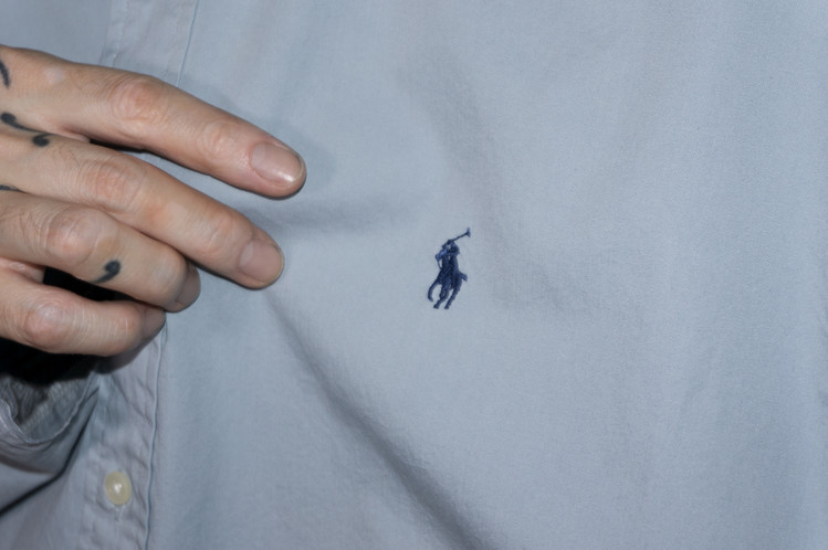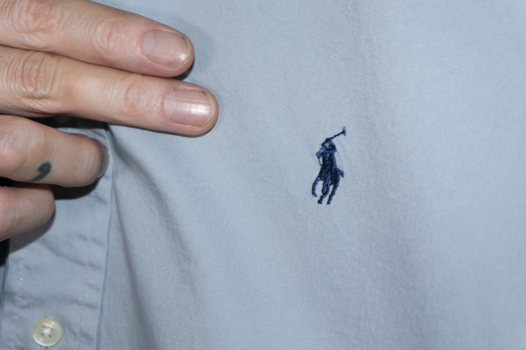 East oklm, The hand remake garments로 Polo Ralph Lauren 셔츠를 이용하여 만들어진 Landfill 셔츠 상품.