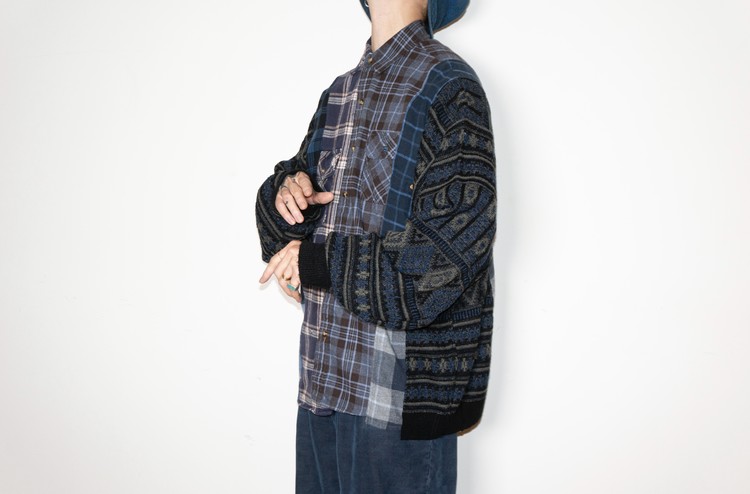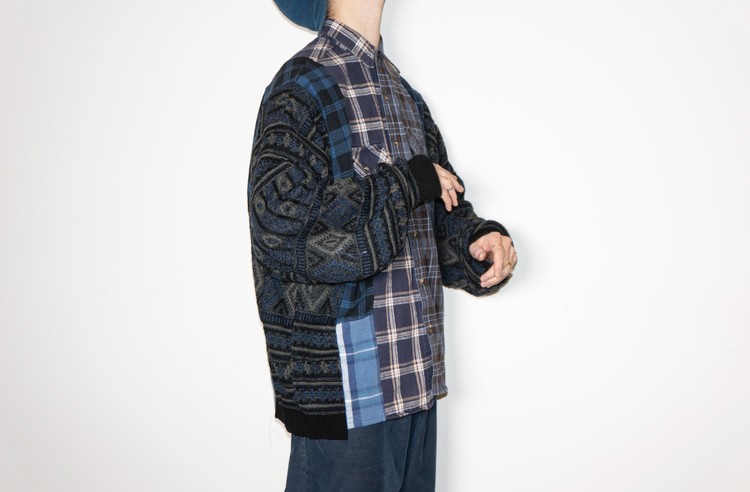 East oklm, The hand remake garments, mixed shirt (Flannel x knit)