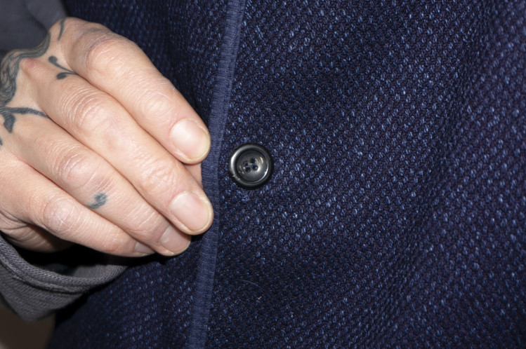 단추는 소뿔 단추를 이용하여 은은한 광택감과 무늬, 좋은 내구성을 확인할 수 있으며, 앞면과 뒷면 모두 주머니를 활용할 수 있도록 제작 되었습니다.