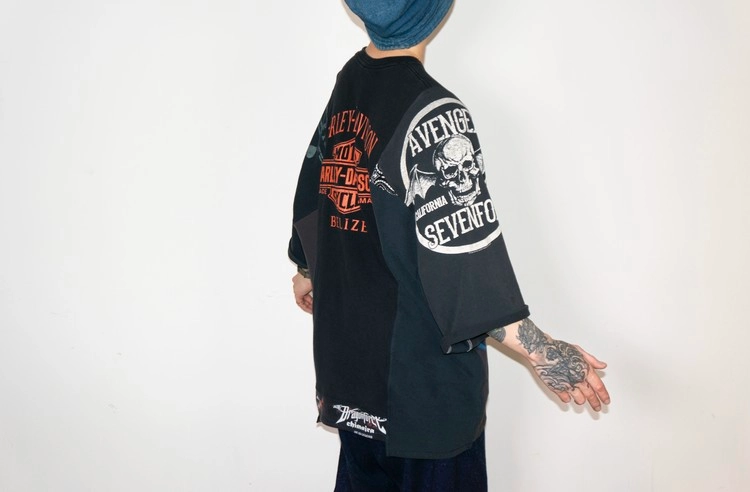 East oklm, The hand remake garments, Mixed T-shirt (Harley Davidson x Skulls)SOLDOUT