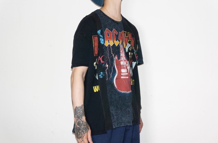 East oklm, The hand remake garments로 여러장의 빈티지 Rock Band 티셔츠들을 해체하고 재구성하여 만들어진 믹스 언밸런스 티셔츠 상품.