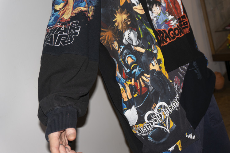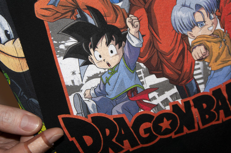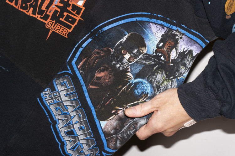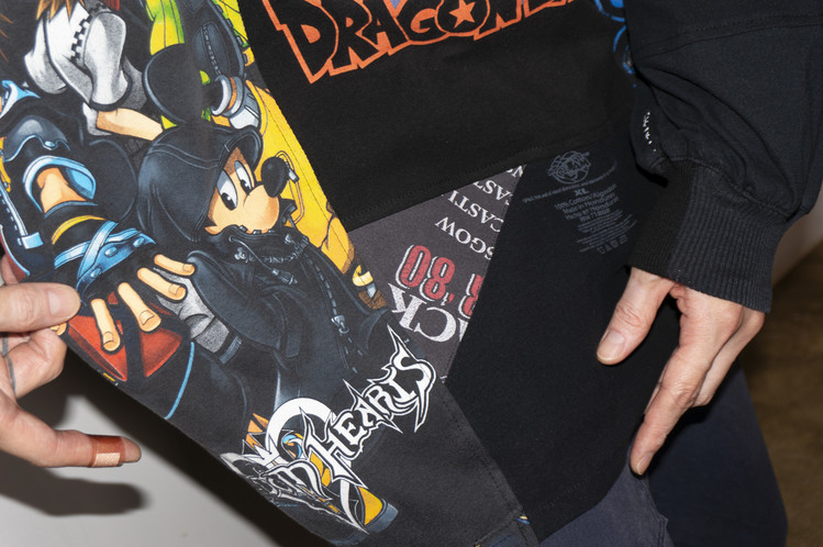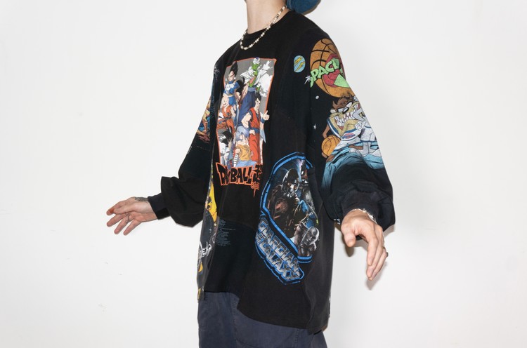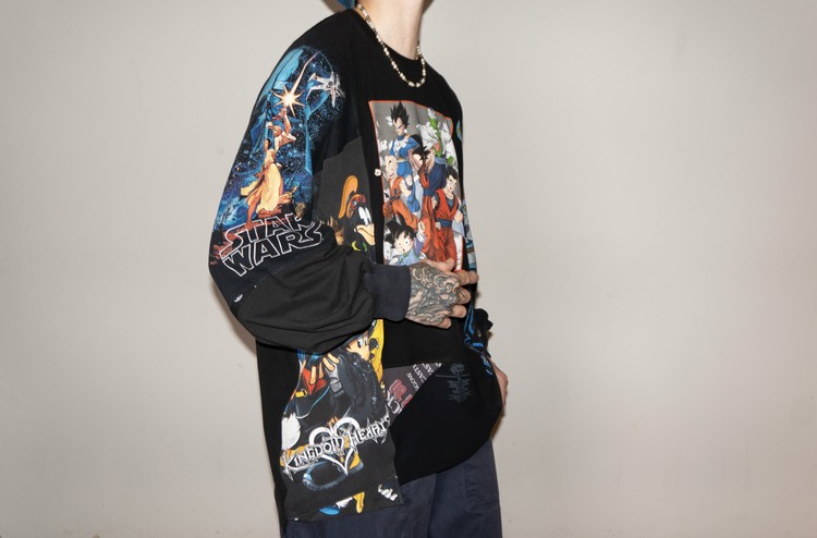 중심에 손오공을 비롯한 레전드 애니메이션 드래곤볼(Dragon Ball) 캐릭터들 프린팅을 두고, 1996년 루니툰과 크로스 오버로 만들어진 미국 영화 스페이스 잼(Space Jam), 마블 시리즈 가디언즈 오브 갤럭시(Guardians of the Galaxy), 스타워즈 (Star Wars), 일본의 스퀘어 에닉스와 월트 디즈니 컴패니가 합작하여 만든 게임 시리즈 킹덤 하츠(Kingdom Hearts) 캐릭터들과 프린팅들의 조각등을 믹스 하였으며, 전체적으로 블랙 색상의 티셔츠들로 구성하여 안정감있는 색감을 확인할 수 있습니다.