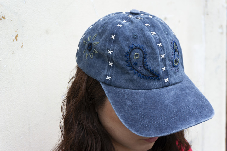 East oklm, The hand remake garments로 빈티지 캡에 에스닉한 문양의 정성스러운 손바느질 자수를 넣어 완성된 리메이크 Cap 상품.